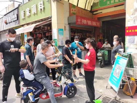 為確保鳳凰山路壹號(hào)商城疫情防控工作落細(xì)落實(shí),新匯成公司采取以黨員帶群眾的形式,動(dòng)員全體職工參與疫情防控。五一節(jié)假日期間,全體職工堅(jiān)守崗位,嚴(yán)格執(zhí)行“雙檢一測(cè)一登記”流程,對(duì)進(jìn)場(chǎng)的所有人員進(jìn)行“雙碼”查驗(yàn)、測(cè)量體溫并進(jìn)行追本溯源信息登記,每日對(duì)進(jìn)出場(chǎng)的200余輛車(chē)輛進(jìn)行消毒。